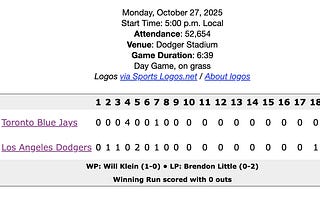 L.A. Dodgers win the 7th game 5-4 in 11 innings.