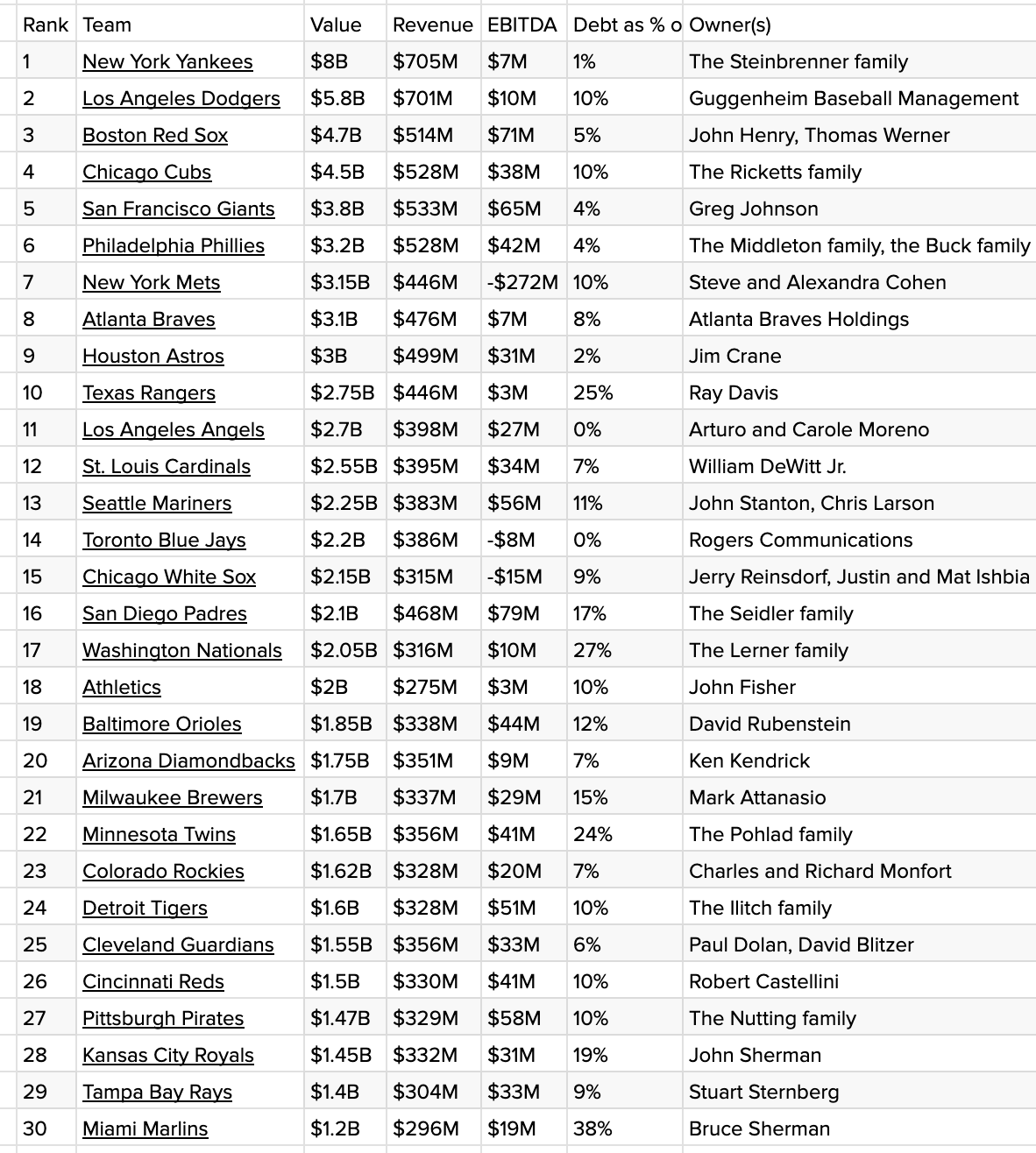 Baseball teams differ in size and wealth, so the New York Yankees, Los Angeles Dodgers, Boston Red Sox, San Francisco Giants, Philadelphia Phillies, Chicago Cubs, and Atlanta Braves have natural advantages over the Kansas City Royals, Milwaukee Brewers, Tampa Bay Rays, and Pittsburgh Pirates. In short, they have more fans, so they have more money to spend on better players.