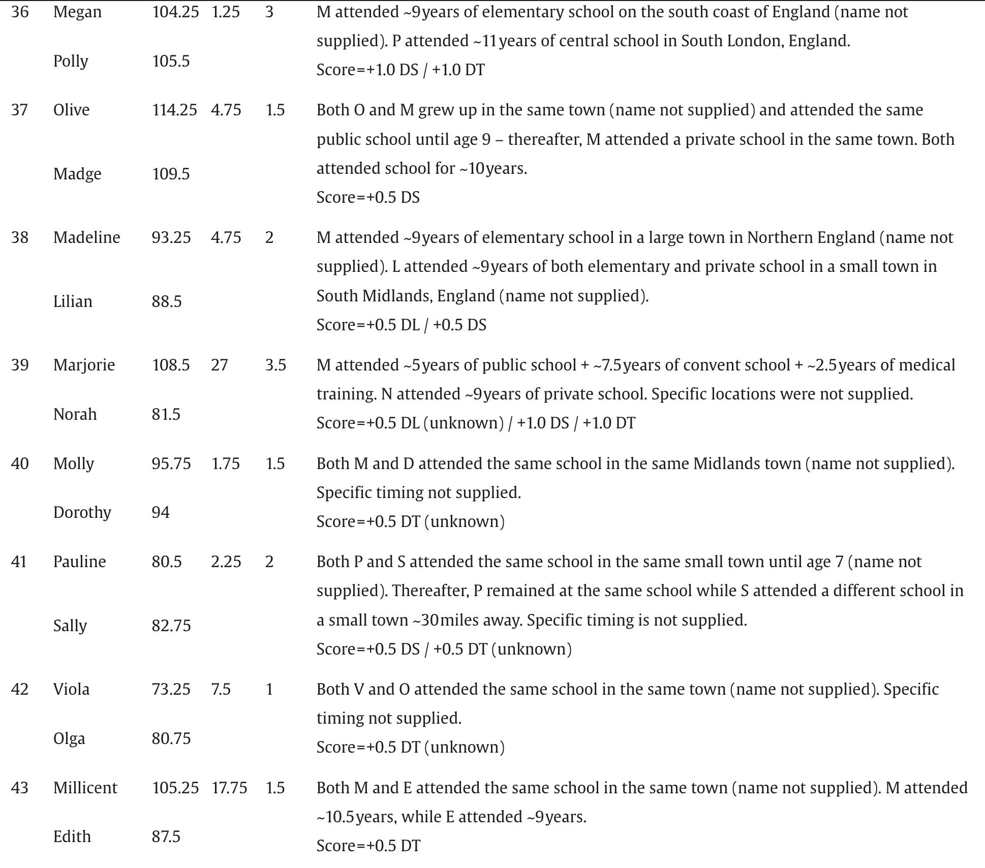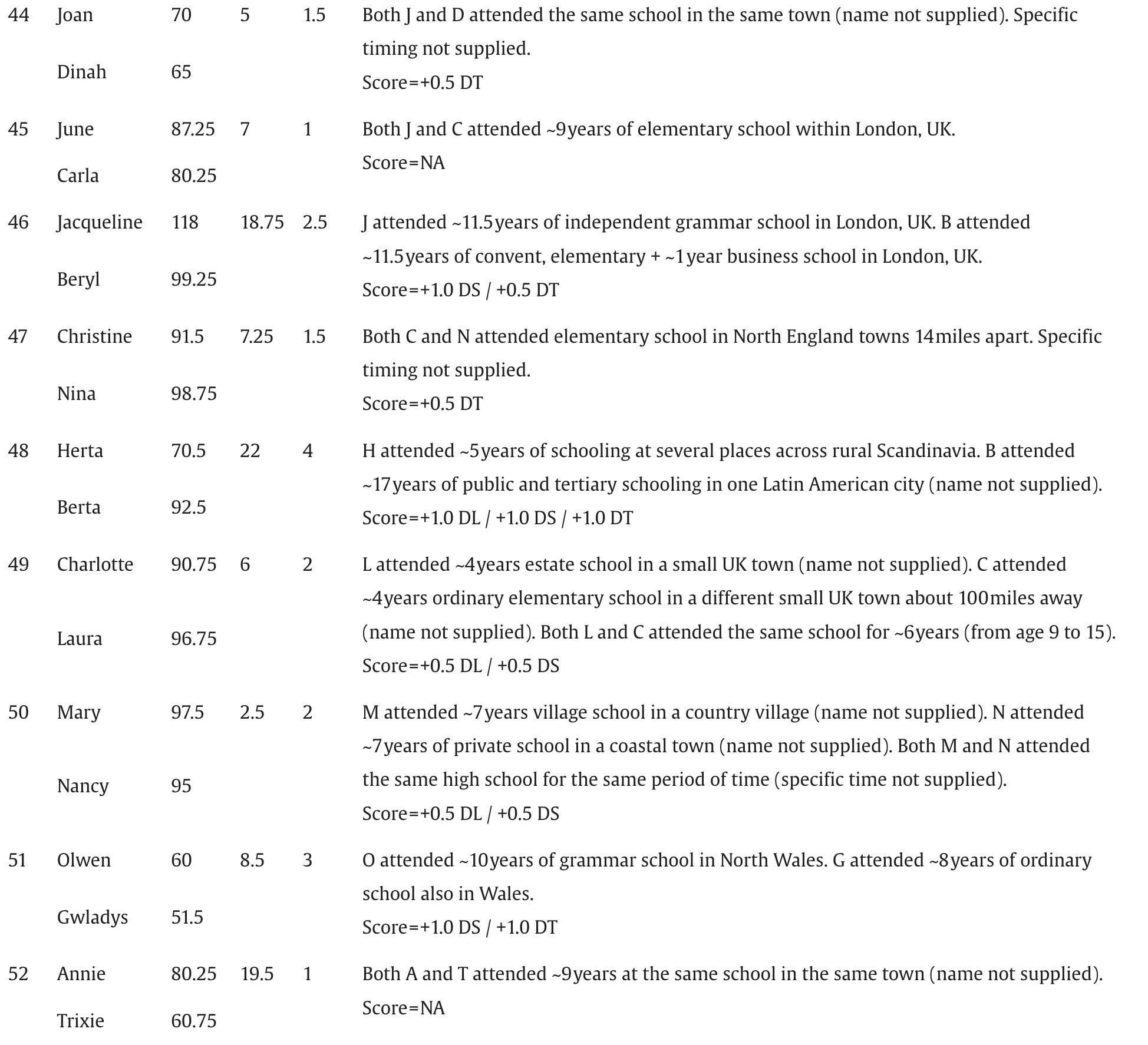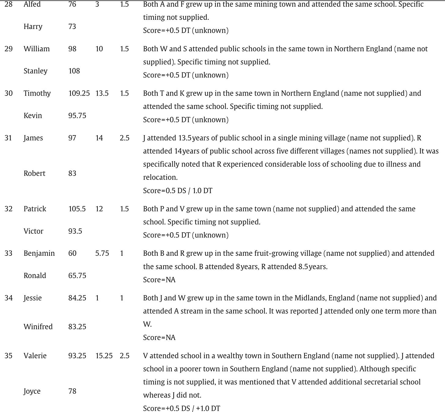 Many of these pairs were not as apart as you might assume. Of the 87 pairs, 26 (30%) attended the same school for at least part of their educational careers.