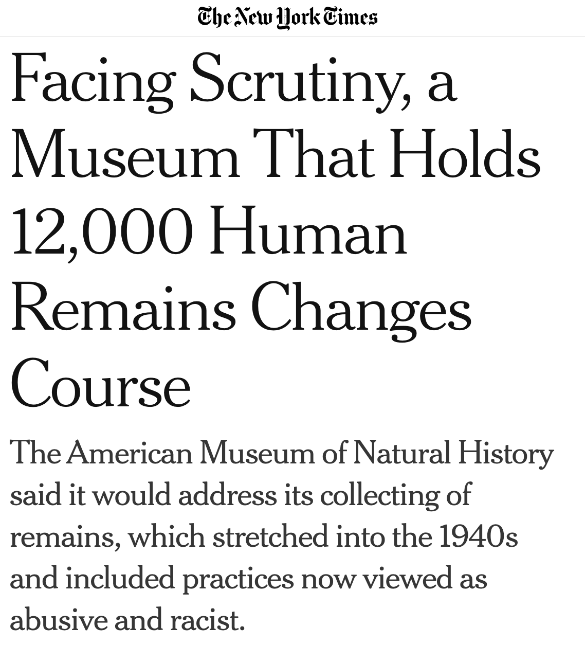The media is increasingly up in arms about museums that have in their old collections the skeletons of nonwhites, which is proof of racism.