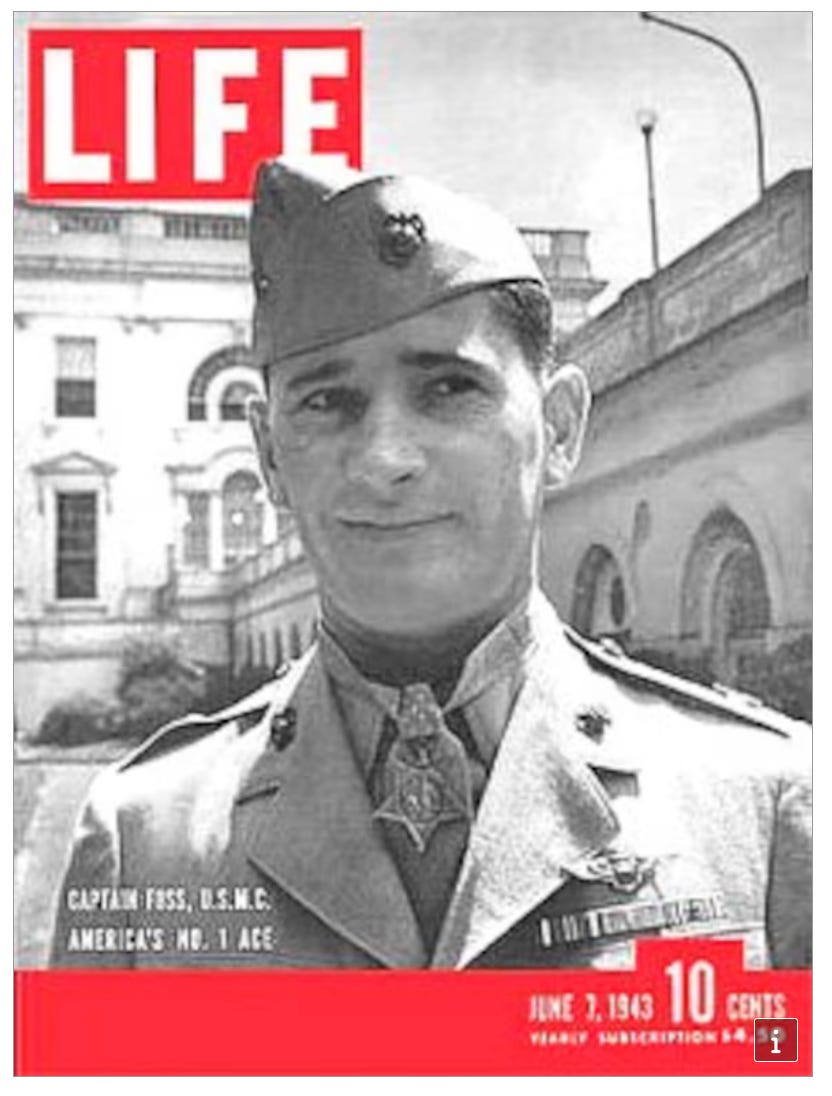 “I received the medal in 1943 from President Franklin Roosevelt,” after shooting down 26 enemy planes in the Pacific, said Gen. Foss, who was a Marine fighter pilot during World War II.