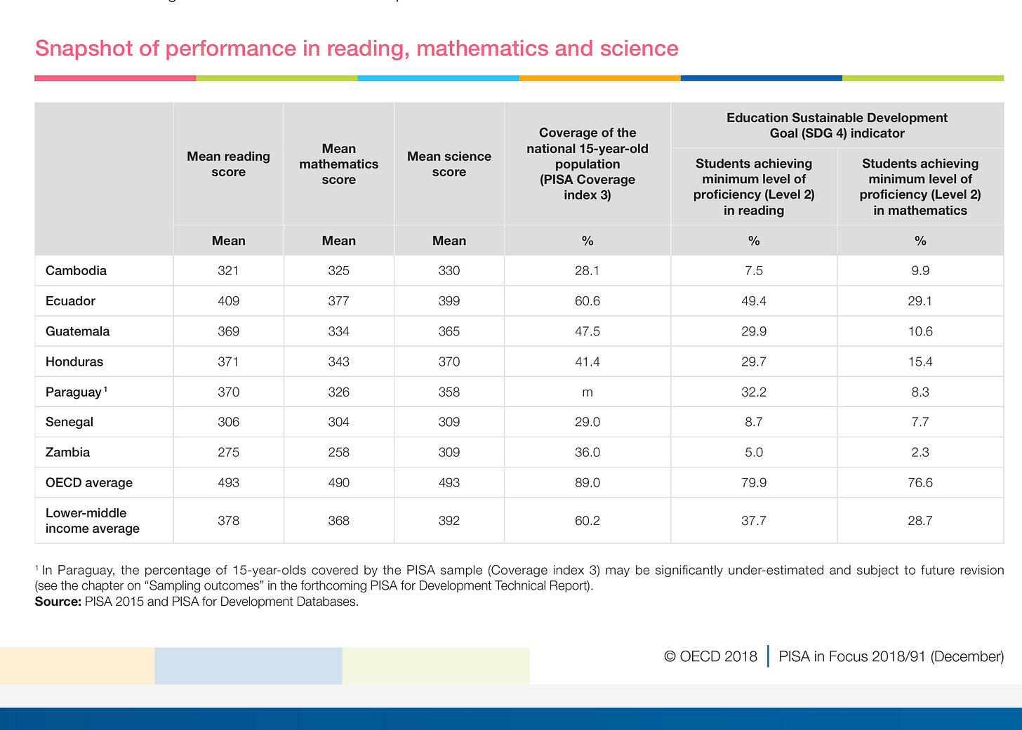 African-Americans averaged 459 on the regular PISA in reading, while Zambians averaged 275 on the PISA-D (Senegal scored 306). The scoring is intended to be equally difficult on both.