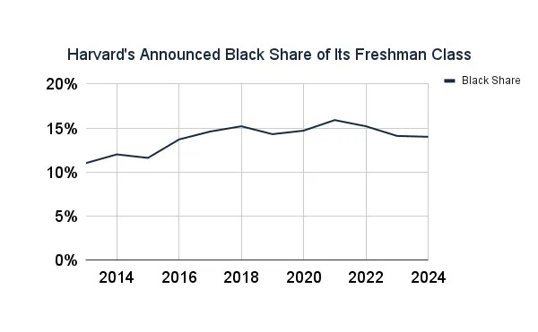 So, Harvard actually cut its black share from 18% in 2023 to 14% in 2024.