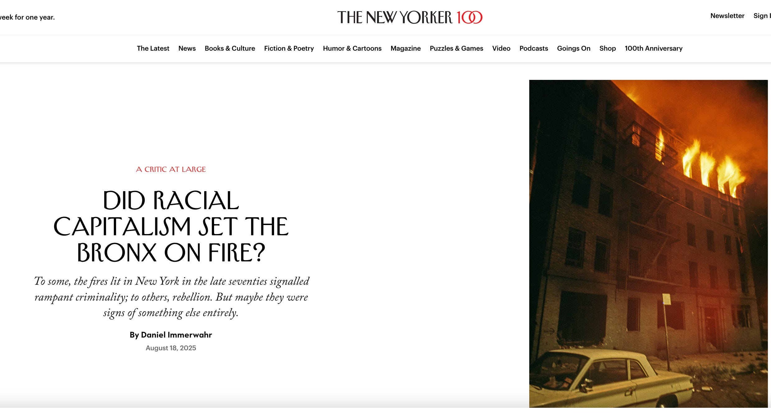 A celebrated new book, Born in Flames: The Business of Arson and the Remaking of the American City by the historian Bench Ansfield (a Person of Plurality who insists on being referred to, confusingly, with plural pronouns) insists that The Media back in the 1970s blamed the tenants while never suspecting that landlords were torching their properties for the insurance money.