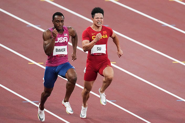 The fastest 100m time ever by a non-African was Su Bingtian of China’s 9.83 in the 2021 Tokyo Olympic semifinal, which was powered by an all-time great start: