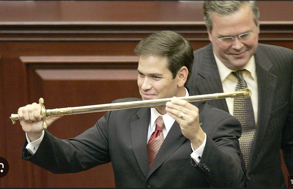 Q. After you became the first Cuban-American speaker of the Florida House of Representatives, in 2006, your mentor, Jeb Bush, presented you with a sword. What was that about?