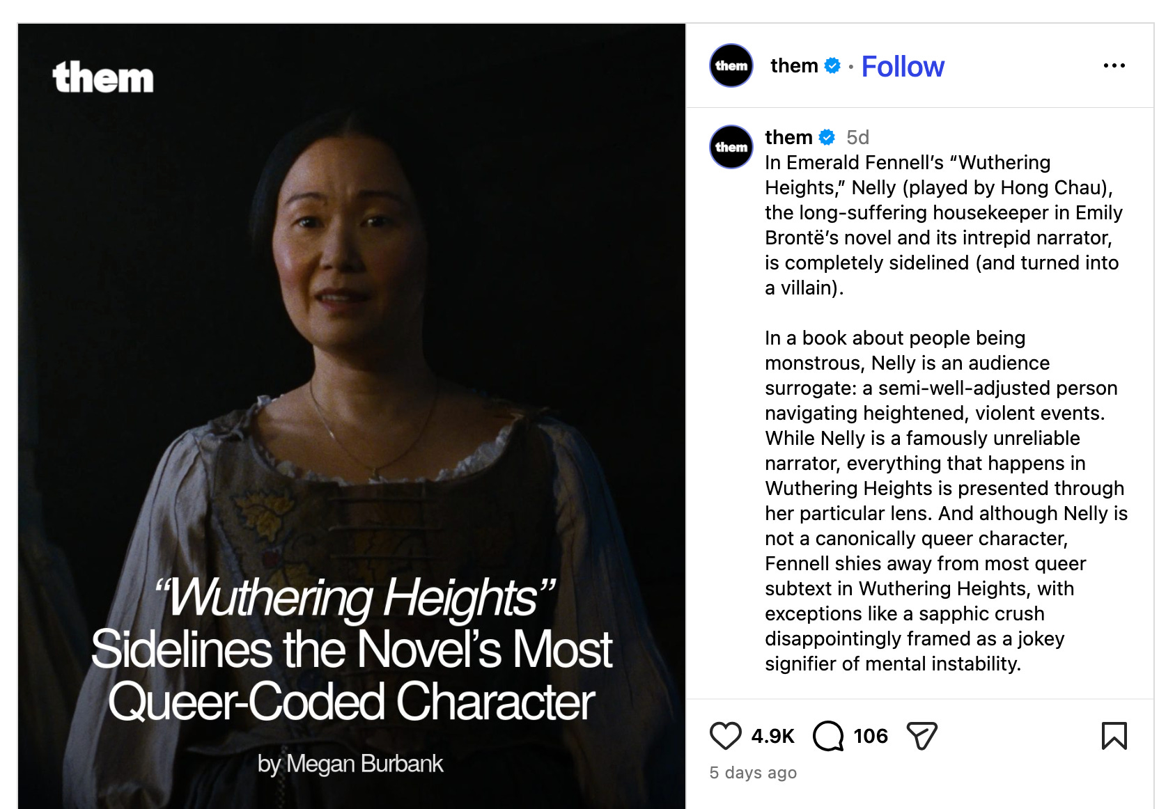 Emerald Fennell’s “Wuthering Heights” has become the No. 1 movie in the country in large part because of its extreme horniness. But to me, the most relatable scene comes when the servant Nelly Dean flops into a chair and gazes wearily offscreen, seeming to wonder how she got caught up in such a hot mess. As played by Hong Chau,