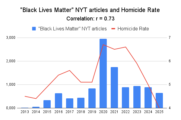 “It is possible that these rates reflect a longer-term downward trend punctuated by periods of elevated homicides,” Lopez said.